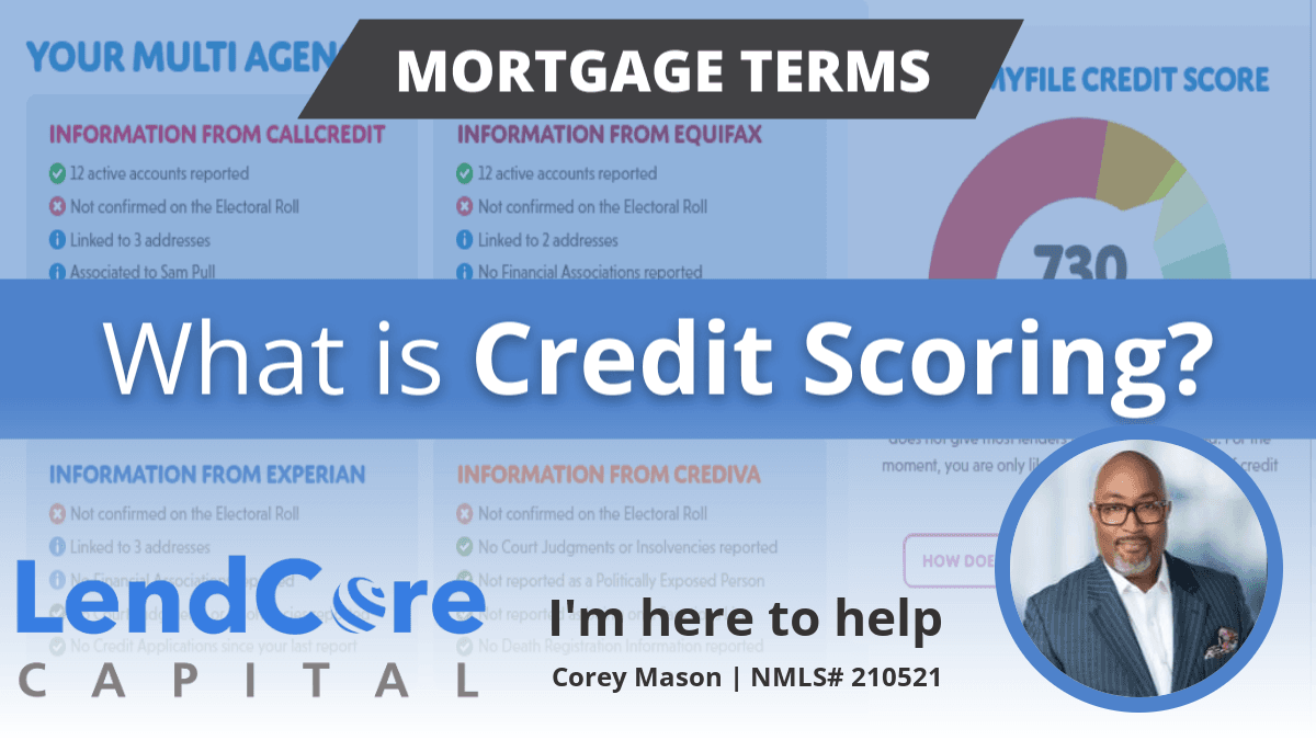 Credit scoring refers to a number lenders use to help determine the likelihood that a buyer will pay back a loan on time. The scoring method most often used is FICO, and it can range from 300 to 850. The higher your score, the better you look to a lender, making it more likely to get approved for a loan.